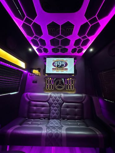 This stunning vehicle exemplifies the sophistication and luxury that only Mercedes-Benz can deliver. Step inside and you’ll be welcomed by a fully customized interior, crafted by some of the nation’s premier coach builders exclusively for 495 Limousine. The Mercedes Sprinter Limo is outfitted with every premium feature imaginable, including: